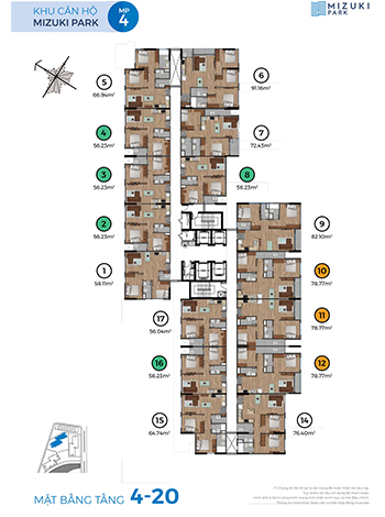Khu căn hộ biệt lập Flora Mizuki MP1, MP2, MP3, MP4, MP5 tọa lạc trên một trong những trục đường chính của khu đô thị Mizuki Park gồm 5 blocks nhà cao 20 tầng. Với lợi thế cảnh quan riêng 3 mặt view sông và khu kênh đào rộng 17000m2, thừa hưởng tiện ích kép nội khu và toàn khu đô thị, kế cận khu nhà phố thương mại Valora Mizuki, căn hộ Flora Mizuki là dự án an cư có môi trường vô cùng lý tưởng cho các gia đình trẻ.